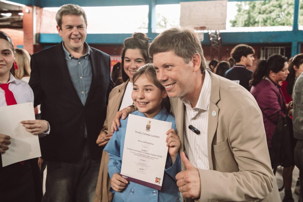 El Trinity College London, una prestigiosa institución británica, es un organismo evaluador que otorga calificaciones y diplomas en múltiples áreas de la enseñanza del inglés. En esta oportunidad, 120 estudiantes de entre 4º grado y nivel secundario recibieron su reconocimiento por haber superado con éxito la evaluación realizada a fines de 2025. Cabe destacar que el municipio cubrió íntegramente el costo de los exámenes, eliminando así cualquier obstáculo económico para los alumnos.